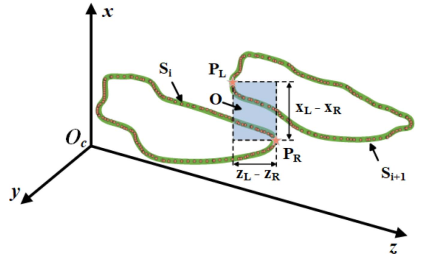图7展示了相邻椎体切割轮廓的重叠区域(蓝色部分),通过左右轮廓的边界点坐标差计算重叠面积。