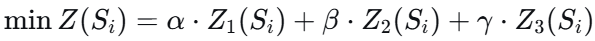 三个目标函数通过线性加权求和整合为单一优化目标: