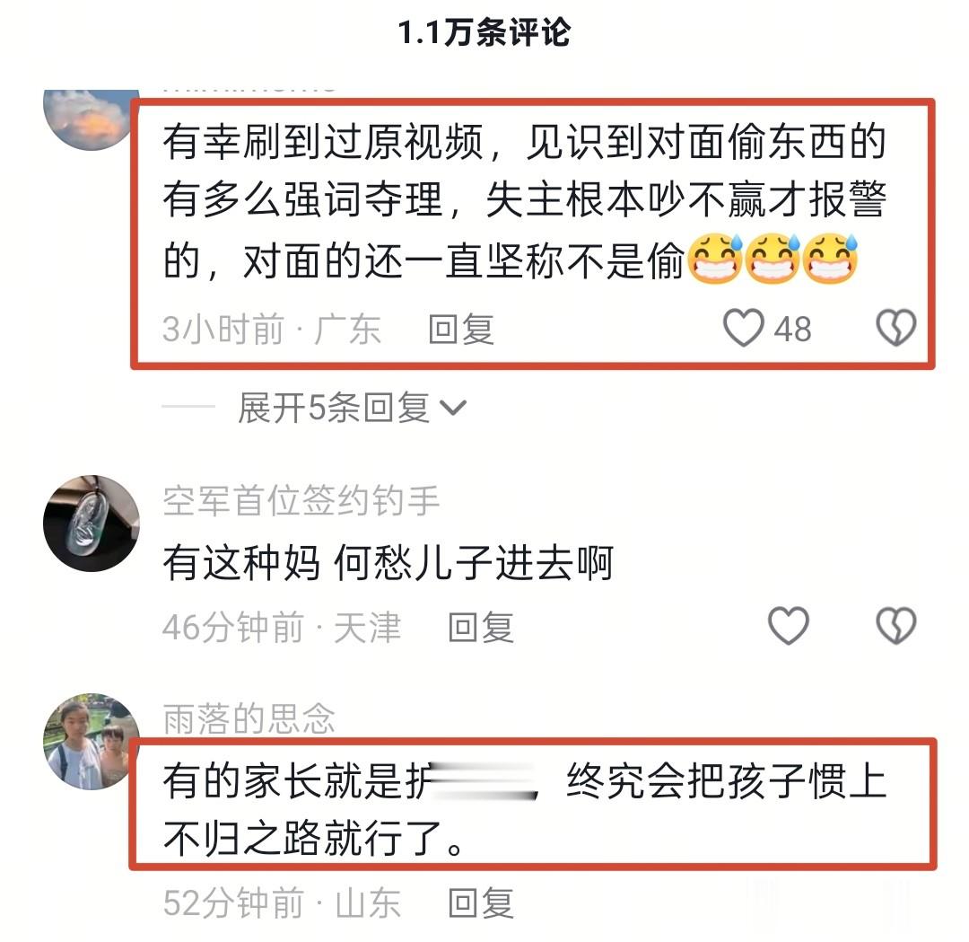 还有网友说: “看过原视频,见识到对面偷东西的有多么强词夺理,失主根本吵不赢才报警,对面的还一直坚称不是偷!”