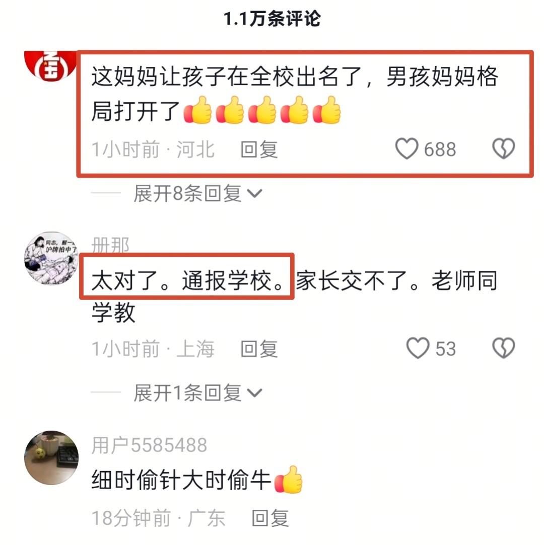这段视频曝光后,引发广泛网友们热议,有网友说: “这妈妈让孩子在全校出名了,男孩妈妈格局打开了!”
