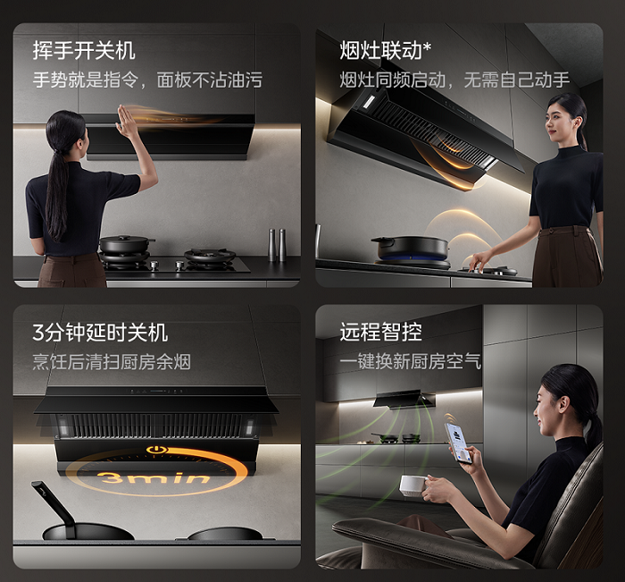 此外,小西梅油烟机支持挥手无感操控,让用户告别手忙脚乱与油腻触感:用户在感应区前轻轻挥手,即可实现开关、调档,彻底解放双手;搭载烟灶联动功能。灶具点火时烟机会自动开启,关火后烟机智能延时关闭吸净余烟,让烹饪过程更自在、更从容。