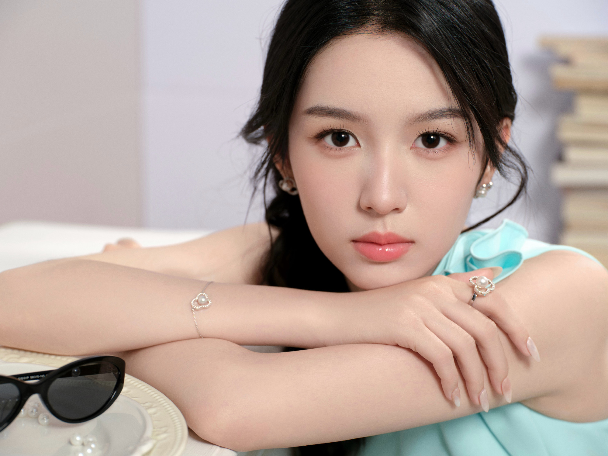 甜美微笑,温柔可人,珍珠项链点缀,尽显优雅气质!