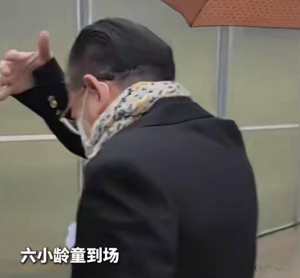 66岁的六小龄童一身黑衣,全程神情严肃,难掩哀恸;