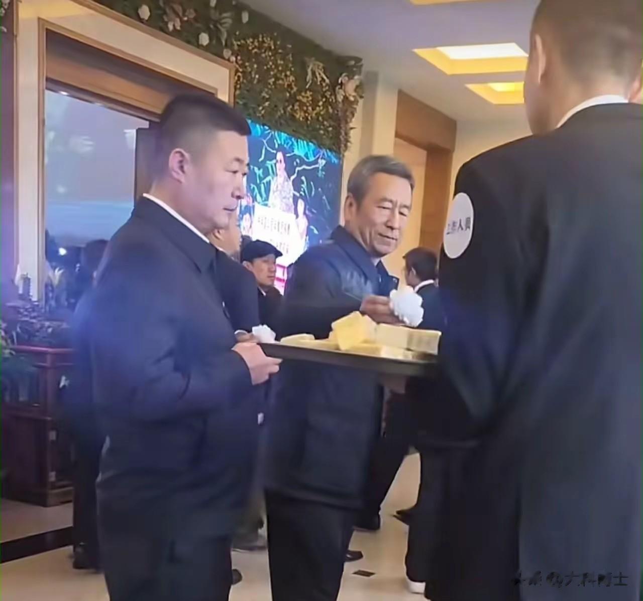57岁的白岩松身着深色外套,领取白花时神色肃穆,难掩悲伤;