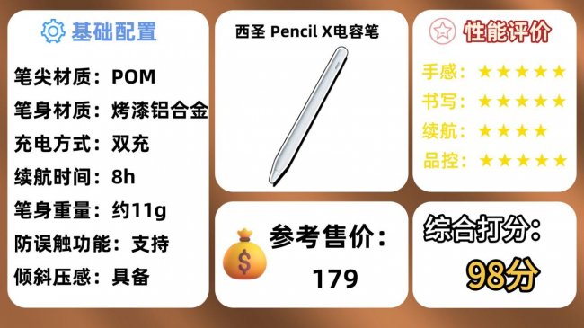 西圣在平价平替电容笔中,以最接近 Apple Pencil 的书写体验著称,无论是书写顺滑度、响应灵敏度还是全屏防误触效果,都表现非常出色,体验堪称同类产品中的佼佼者。近两年,西圣Pencil X在知乎、小红书等平台上广受推荐,被许多用户评为“最值得入手的官方Pencil平替”。