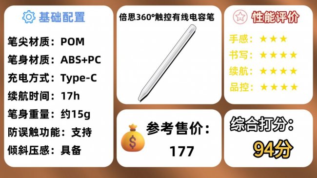 电容笔推荐2026人气款二:倍-思360°触控有线充