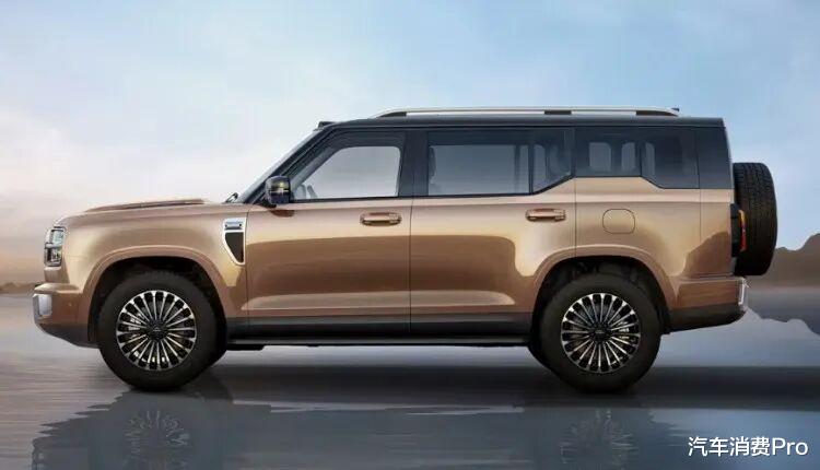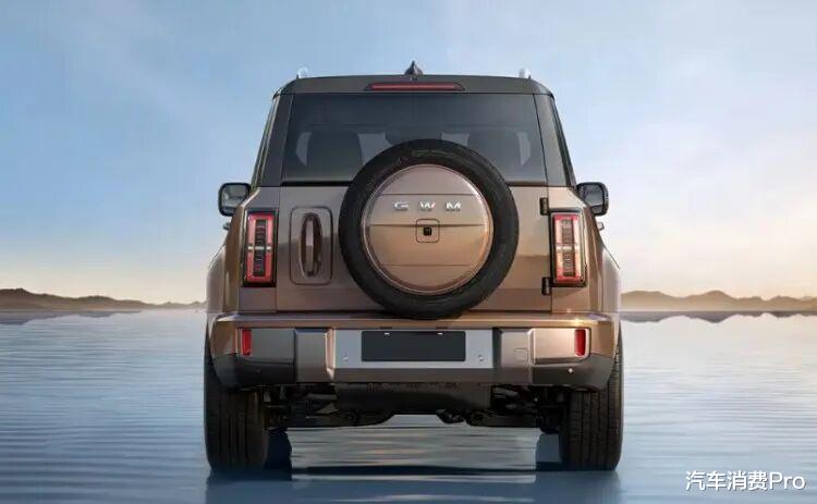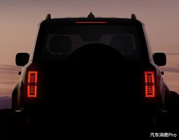 新车尾部营造出上窄下宽的敦实感,尾灯采用直列式造型,点亮后效果出色。此外 ,该车还使用了侧开尾门、外挂式备胎等设计,进一步诠释了“方盒子”的野性气质。