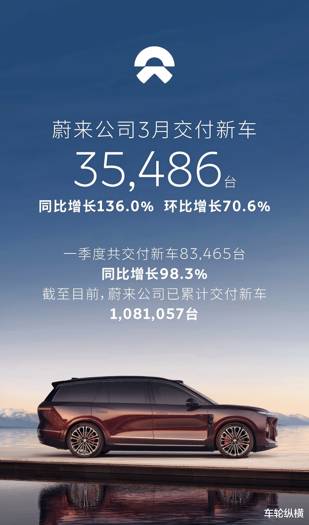 蔚来公司3月交付35486辆,同比增长136%,环比增长70.6%。其中蔚来品牌交付22490辆,乐道品牌交付6877辆,两个品牌都实现了同环比双增长。蔚来一季度累计交付83465辆,同比增长98.3%,同样超出交付指引上限。从同比增幅来看,蔚来是这波反弹中增速最高的头部玩家。