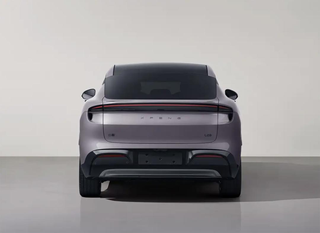 车辆长宽高分别为4650(或4672)/1920/1600mm,轴距达到2850mm,体型略小于小鹏G6。侧面采用半隐藏式门把手,车顶从B柱开始下溜,呈现出轿跑SUV风格;车尾未沿用头灯的T字造型,而是换装了全新样式的贯穿式尾灯,搭配两侧导流槽,进一步强化了运动感。