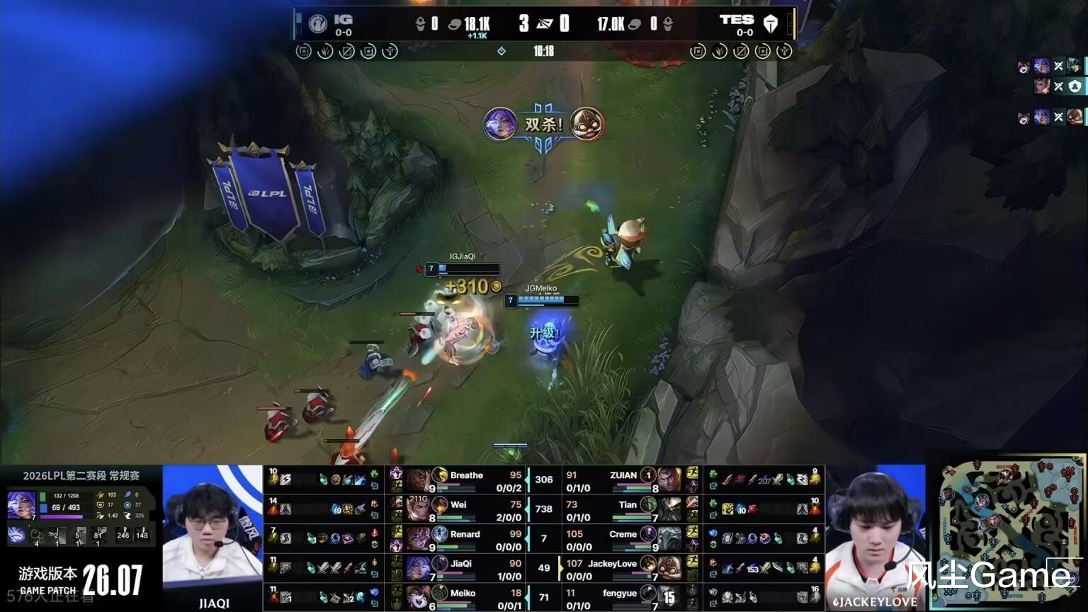 第二把是IG的碾压局,Wei前期在上路打出击杀,同时下路Jiaqi和Meiko发力,对线完成双杀,被自己取代的选手线杀,哥哥这波真有点拉胯了,全线优势的IG,短短15分钟,就打出了6K的经济差,撑了25分钟,滔搏遗憾落败,哥哥这局,比上把还夸张,战绩还是0-6,一个助攻都没混到。