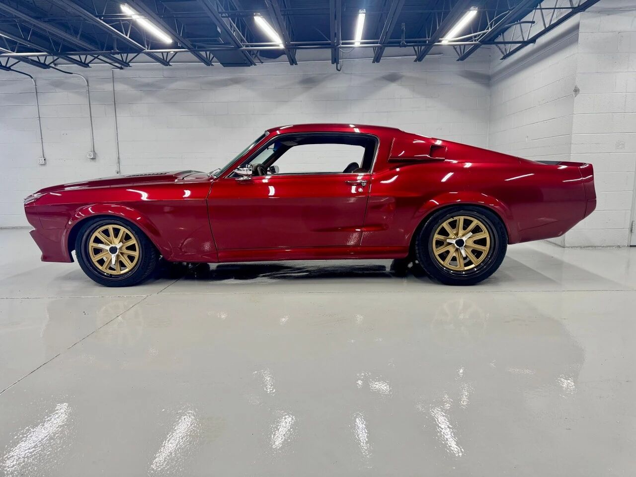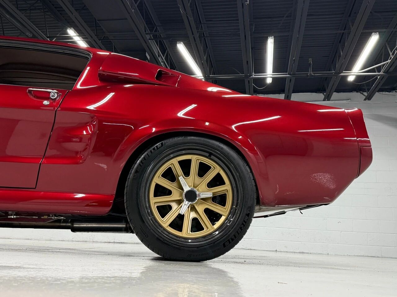 基于1968 Fastback机身打造的Geronimo,外观采用极具视觉冲击力的Magic Red金属红,并搭配Eleanor风格条纹,气场十足。车身全部使用全新金属板重构,细节升级不计其数:定制七寸大灯格栅、后侧百叶窗、Shelby风格序列式尾灯,每一处都经过精心设计。底盘部分同样全面强化,采用Mustang II风格前悬架结构,后部则升级Strange 31花键半轴,强度足以承受接近千匹的狂暴输出。