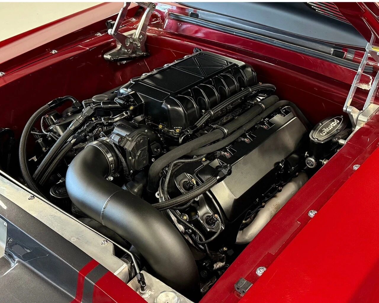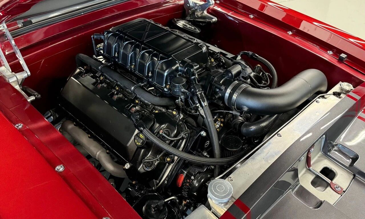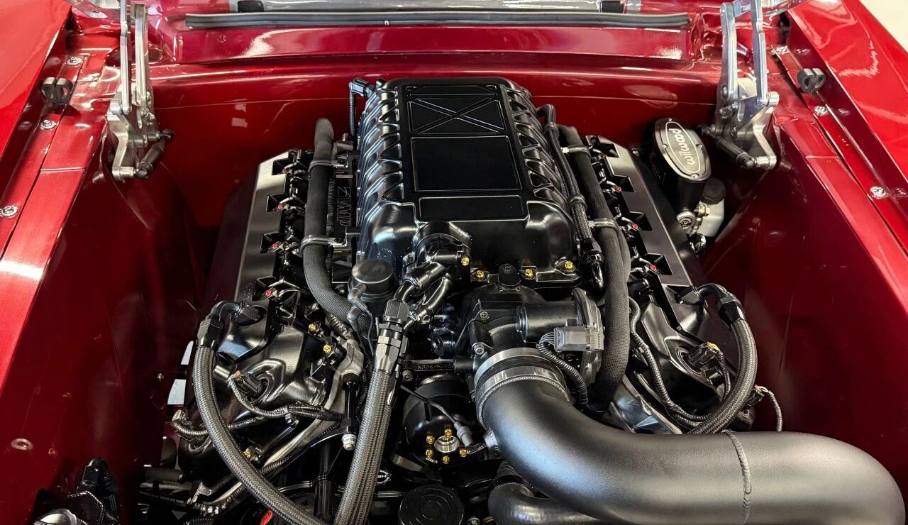 真正的核心在引擎舱。原本的5.0升Coyote V8已经足够强悍,但经过升级Predator机械增压套件、锻造内部机件、定制2.5英寸排气系统后,这台发动机轻松爆发出880马力,动力通过Tremec T56 Magnum六速手动变速箱传递,理论上直线加速能力足以让现代超跑胆寒。