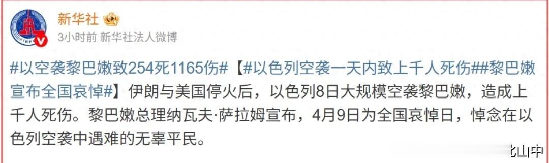 这边美方刚宣布为期两周的停火安排,以色列随即对黎巴嫩贝鲁特居民区发动大规模打击,造成大量平民伤亡,局势瞬间升级。