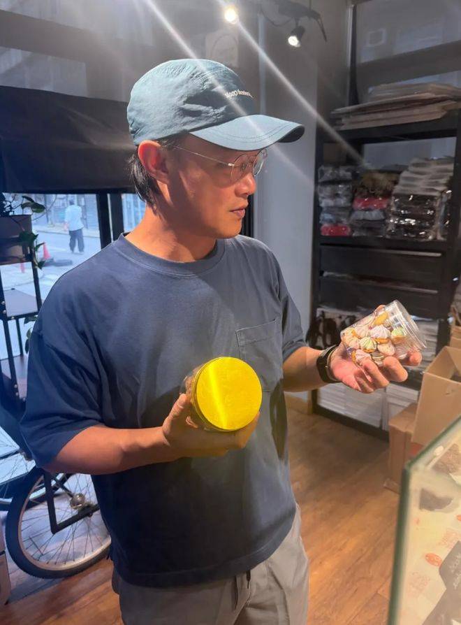 老板娘还分享了更多陈奕迅的趣味照片:他一手捧着一瓶一口酥,另一只手拿着一瓶小饼干,脸上洋溢着满意的笑容,甚至还摆出搞怪的姿势与镜头互动。粉丝们看到这些照片后纷纷留言,说看陈奕迅吃东西的样子既有趣又让人垂涎欲滴,仿佛都能闻到那甜香的味道,忍不住想亲自尝一尝他喜欢的点心。