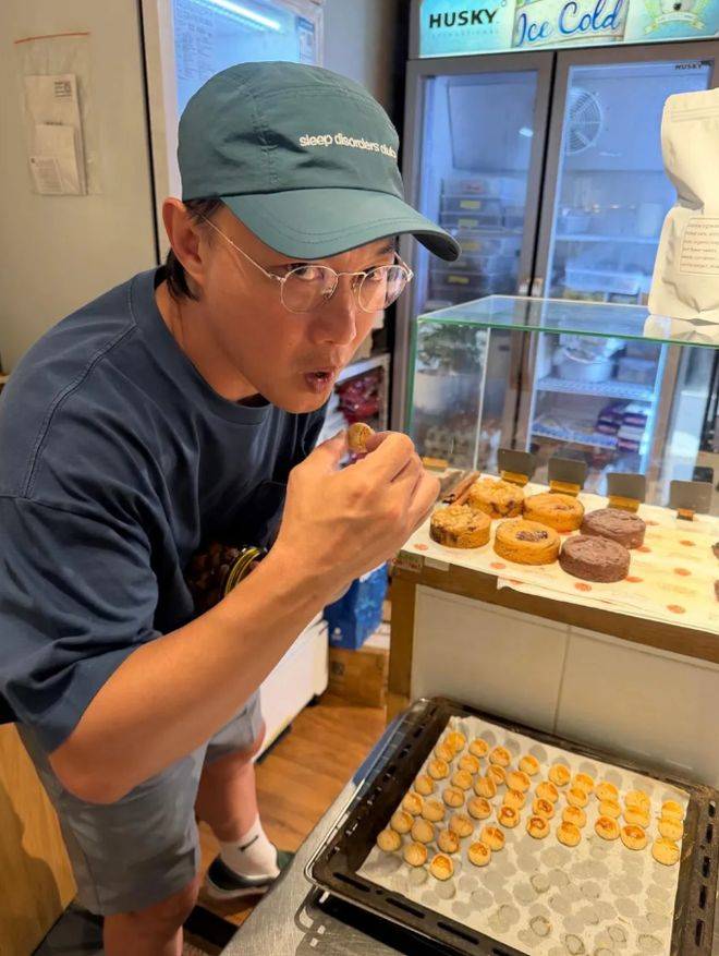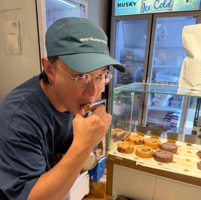 陈奕迅烘焙店买点心,搞怪pose拍照很有趣,品尝美食让网友看馋了