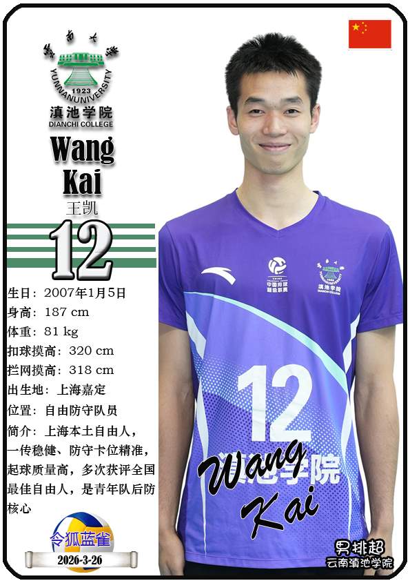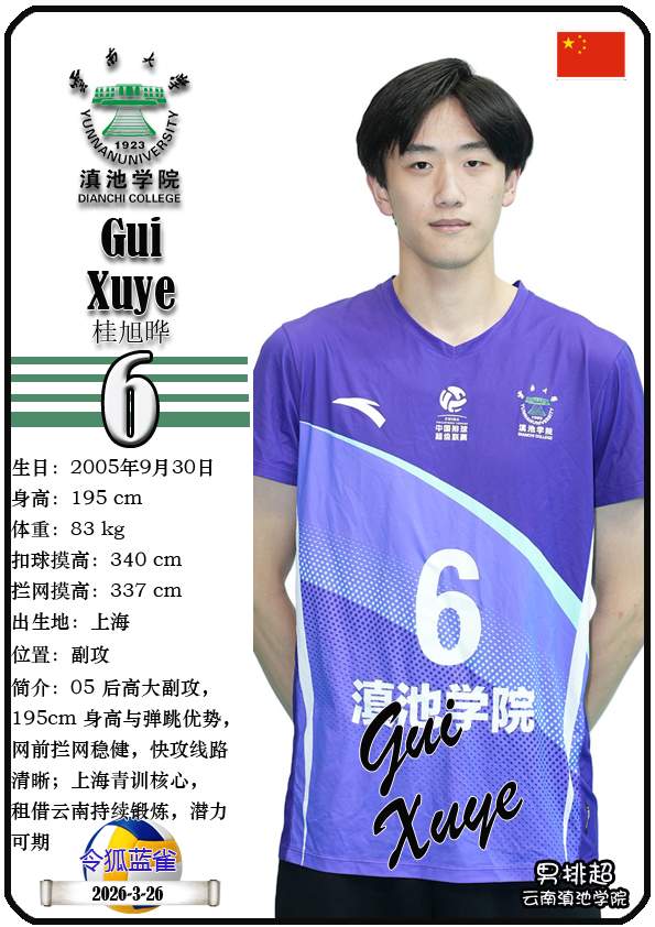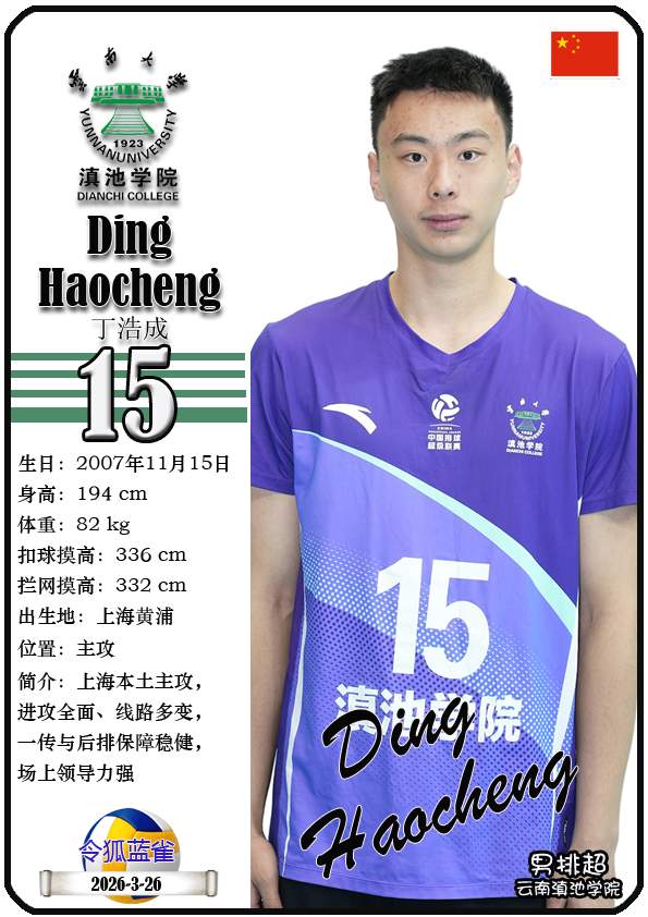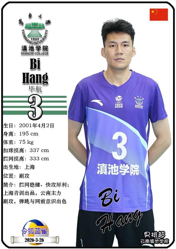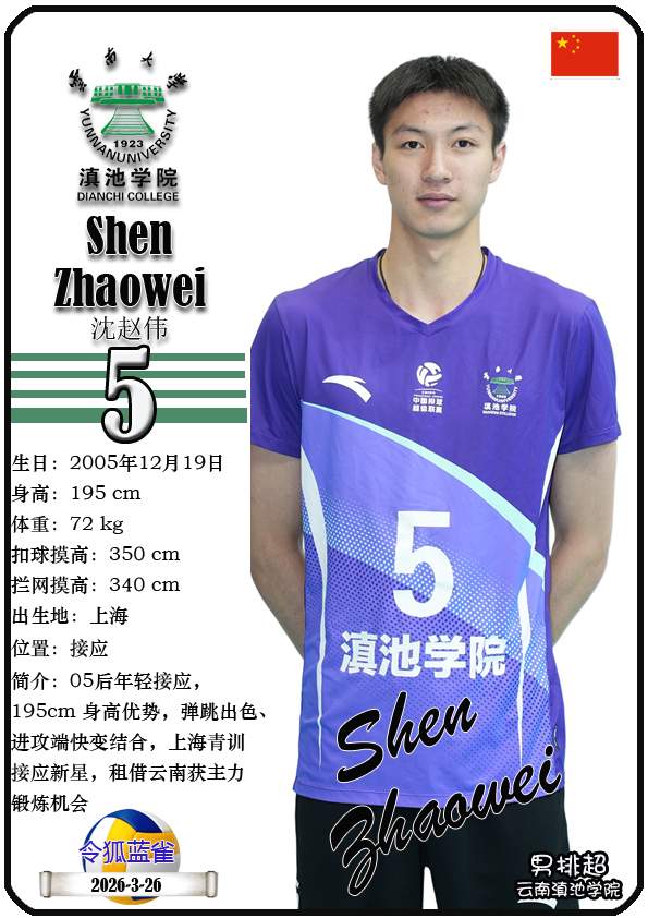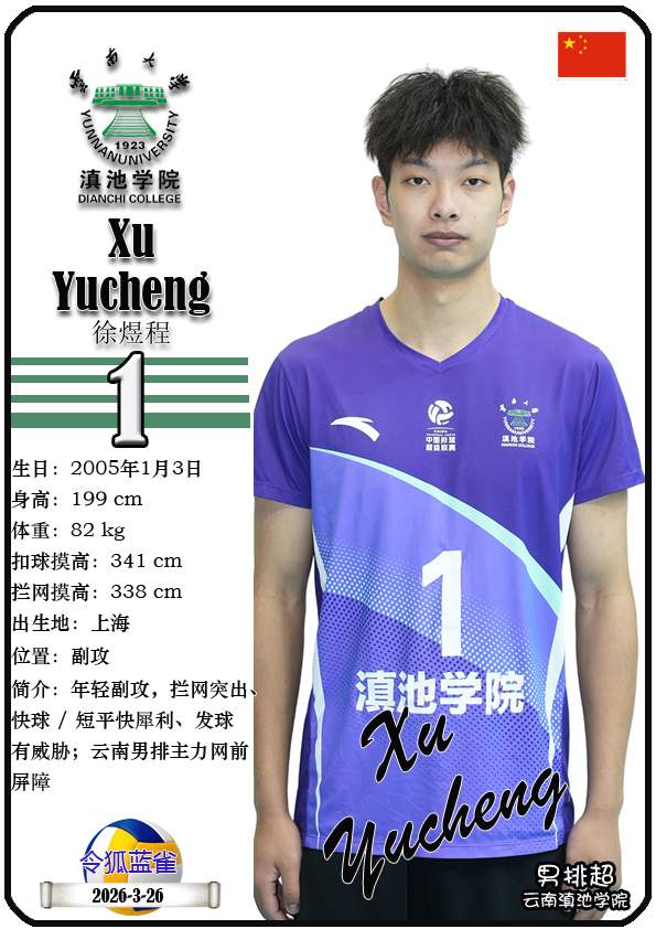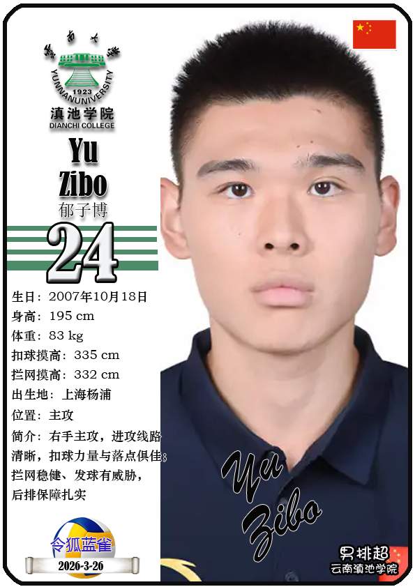注5、所有球星卡为人工制作,非AI生成。本篇内容数据来源:排超官网-云南滇池学院男子排球队,https://league20252026.volleyballchina.com/teamDetail?teamId=27