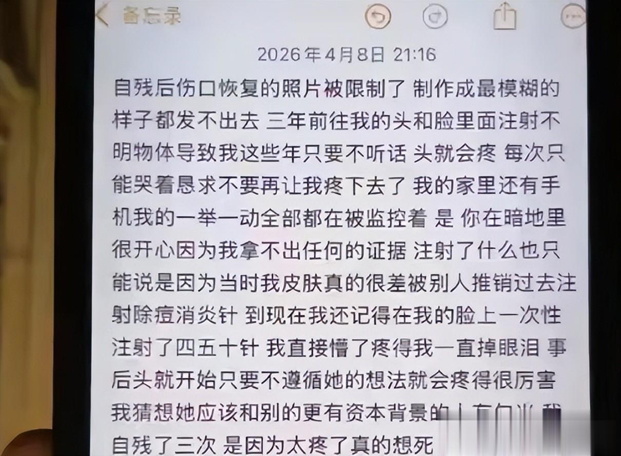 她在备忘录里写得清清楚楚,回忆说三年前有人以 “祛痘消炎” 为借口,把她带到一家护理机构,