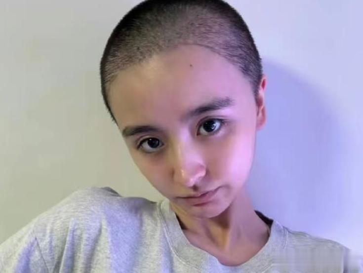 好多人都吓了一跳,照片里的她穿着简单的黑色上衣,寸头显得格外干练,