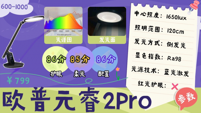 欧普元睿2Pro的特点在于智能化体验。支持APP和语音控制,调亮度、调色温都很方便,预设的多种场景模式也能覆盖学习和休息等需求。但从护眼核心来看,它的光学调校偏基础,蓝光控制和光谱优化都没有太多亮点,高亮模式下对光线敏感的人群可能不太友好。整体属于功能丰富、护眼表现中规中矩的一款,更适合看重智能操作的人群。