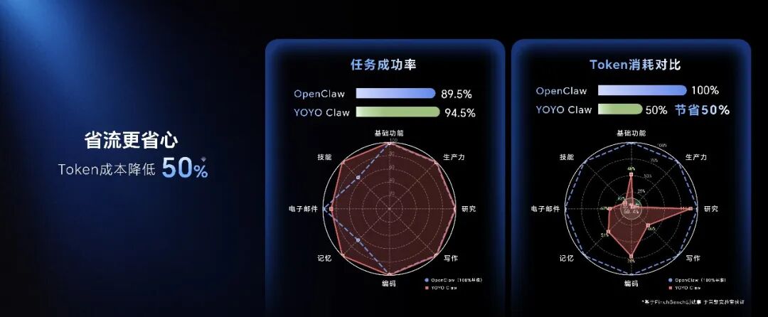 从源头节省,告别词元焦虑:其核心在于智能判断任务该在哪执行。简单、高频及涉及本地操作的任务,100%在端侧完成,词元消耗为零;仅当需要强大云端算力时,才按需调用,并通过优化上下文、记忆匹配等方式,最大化每一次云端调用的效率,从源头杜绝浪费。