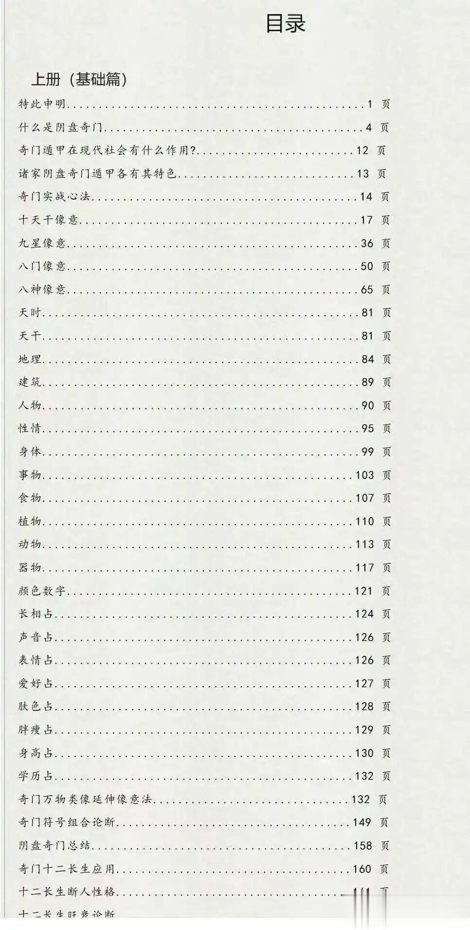 道家阴盘奇门总录3册(基础篇)上册+(实战篇)中册+(案例篇)下册目录上册(基础篇)特此申明.....1什么是阴盘奇门..4奇门遁甲在现代社会有什么作用............12诸家阴盘奇门遁甲各有其特色..13奇门实战心法14十天干像意..17九星像意....36八门像意