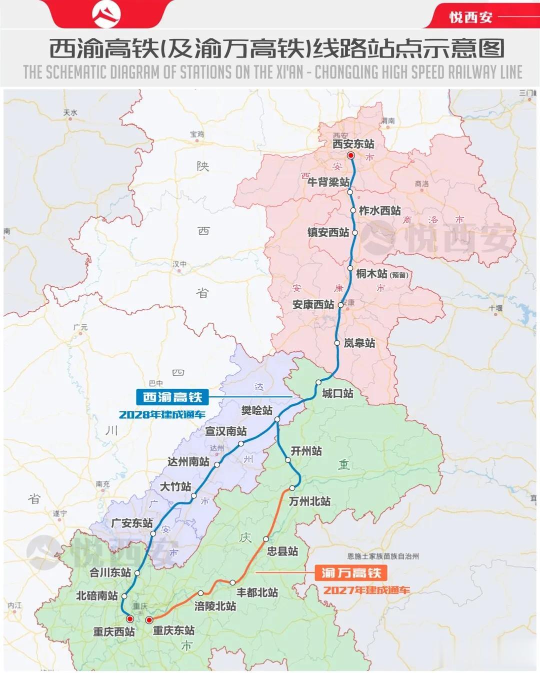 全线共设6座车站,分别为西安东、牛背梁、柞水西、镇安西、桐木、安康西,是串联关中平原与陕南生态区的黄金通道。