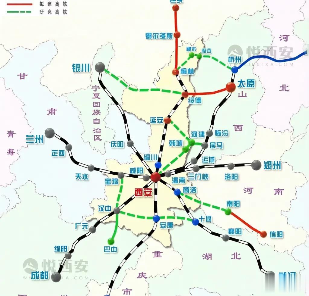 陕西米字型高铁网示意