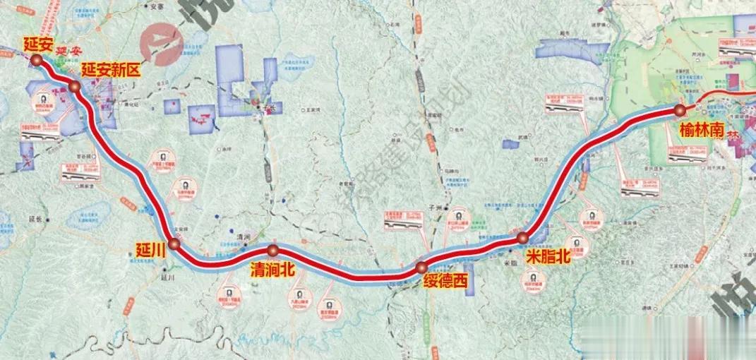 延安至榆林高铁线路示意图