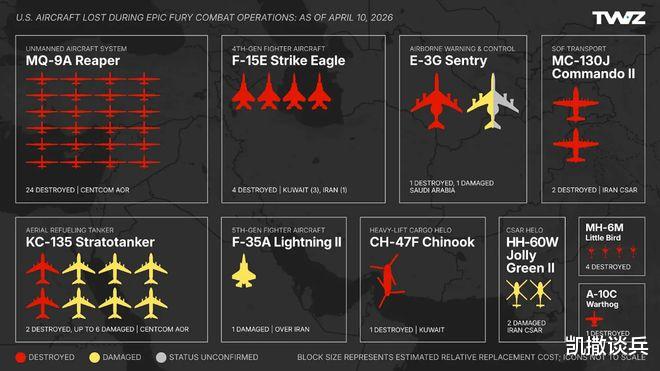 下图是美国《The War Zone》网站发布的,列出的是美军在第一阶段40天战斗中损失的飞行器。