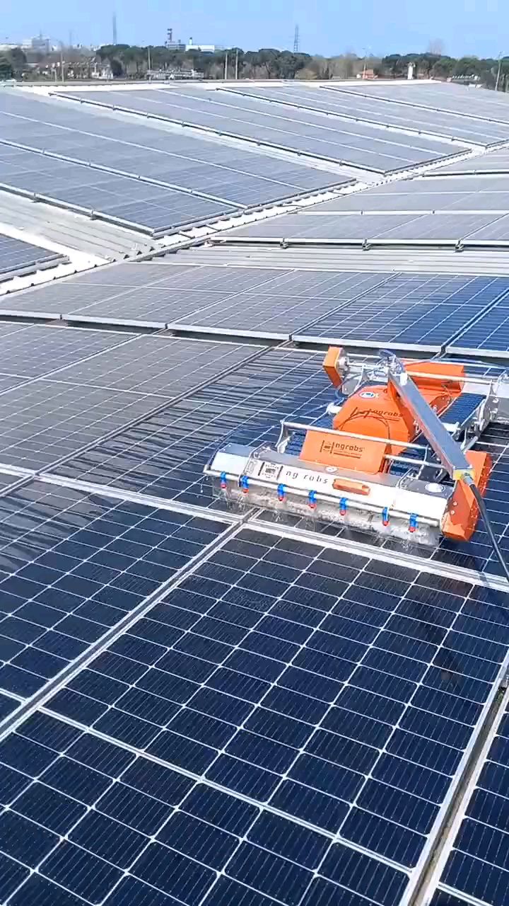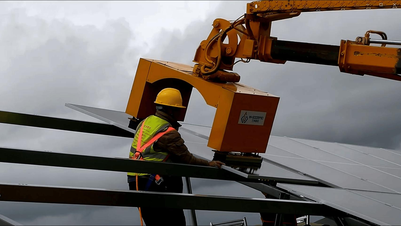 值得一提的是,这套设备在业内首创了卡钳式的搬运安装方式,完全抛弃了传统的吸盘模式。懂行的朋友都知道,沙漠里全是灰尘,吸盘极其容易漏气失效,掉落一块板子损失事小,伤到人可就麻烦了。卡钳就像人的机械手,死死扣住组件,稳当又高效。就凭这一手绝活,他们还拿下了上海光伏展的创新大奖。
