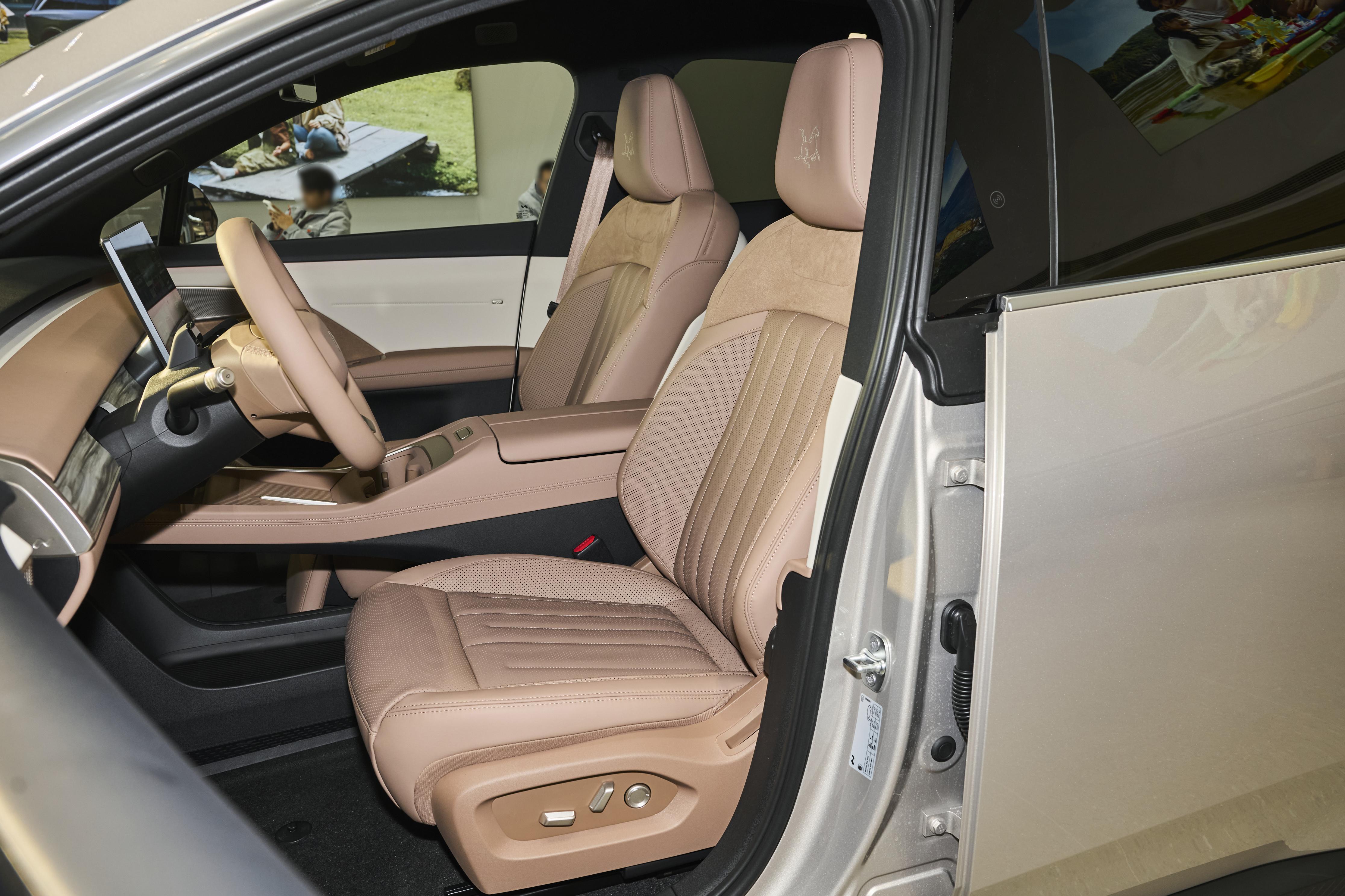 前排驾驶位的空间很充裕,身高180cm的我坐进去,头部和腿部都有足够的活动空间,不会觉得压抑。座椅采用高品质皮质包裹,触感柔软,支撑性好,长时间驾驶也不会觉得累。座椅配备加热、通风功能,还有按摩功能,在长途驾驶时能有效缓解疲劳。方向盘大小适中,握感舒适,多功能按键布局合理,操作起来很方便,不用分心去看屏幕。中控台配备17.2英寸3K中控屏,显示清晰,操作流畅,没有卡顿感,日常使用很顺手。