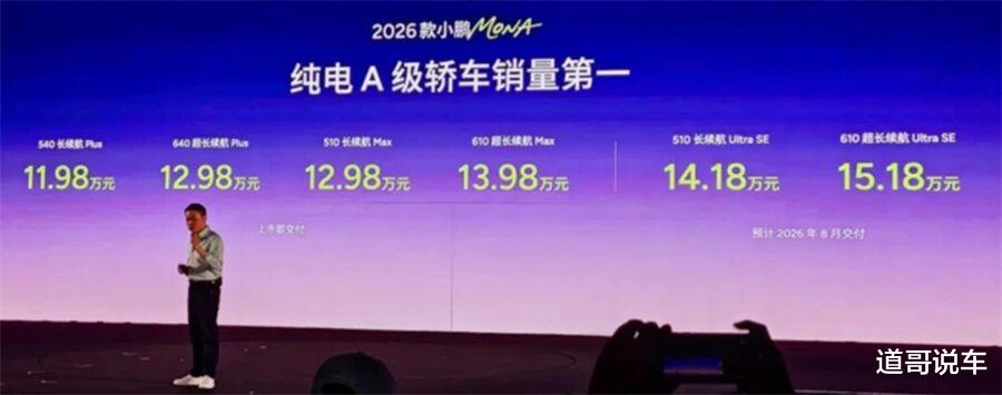 【文/财圈社&道哥说车 张杭】2026款小鹏MONA M03昨晚上市,6款配置,11.98万-15.18万。