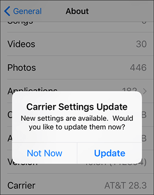 步骤 3. 点击“更新”选项以更新运营商设置。如果没有弹出窗口,则表示没有可用的更新。