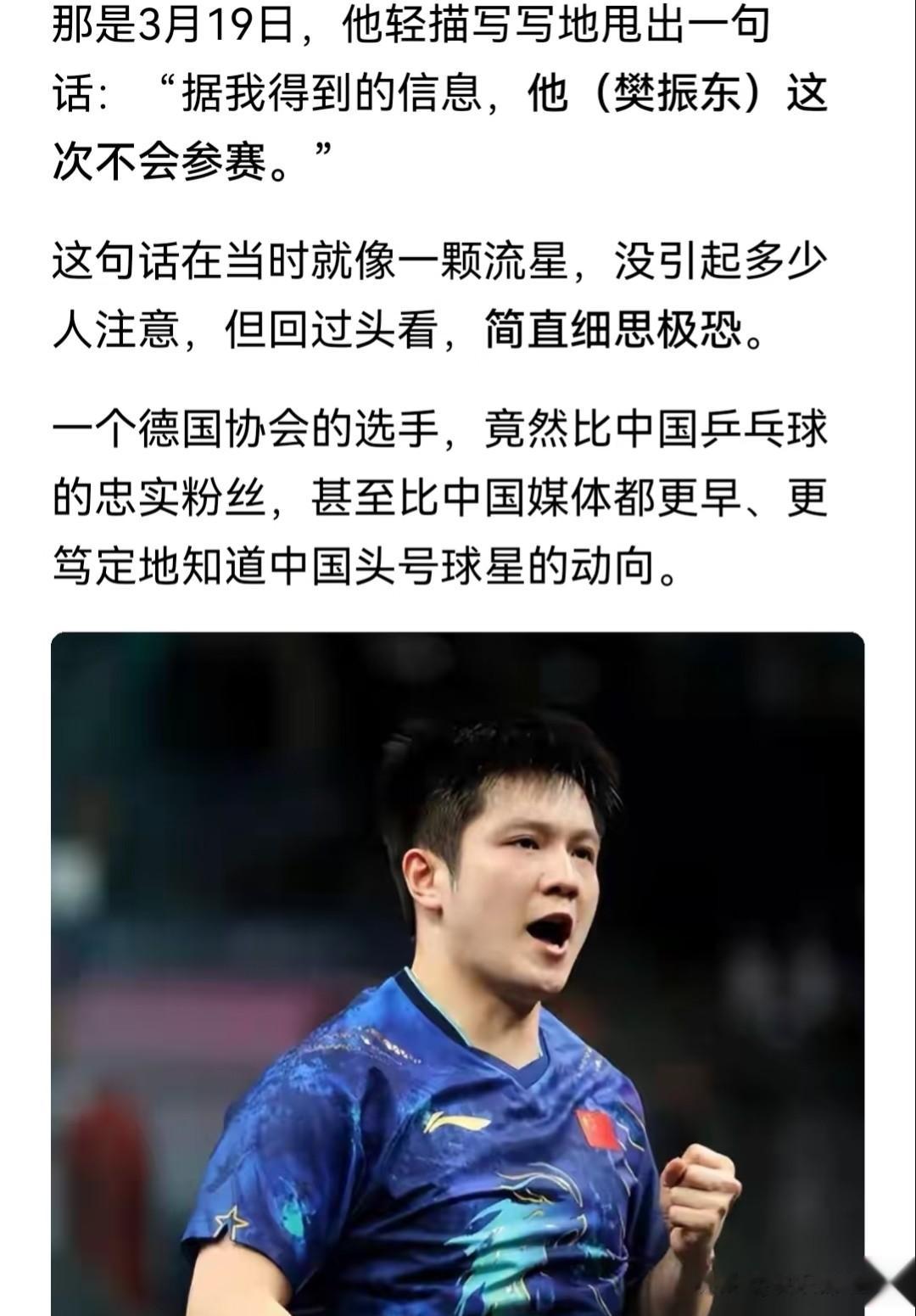 这次樊振东德甲薪资曝光110万欧元。这数字在德国乒协官网上挂着,德甲历史天花板。