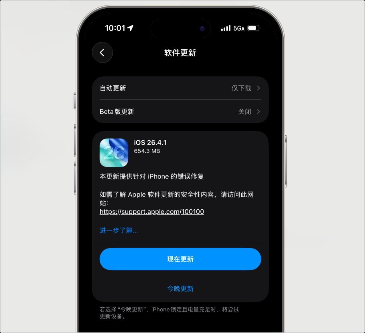 今天凌晨,苹果突然向 iPhone 和 iPad 用户推送了 iOS /iPadOS 26.4.1 正式版,内部版本号为:23E254,更新包也只有 600MB 左右。更新日志显示,该版本主要是错误修复,并没有带来新功能。