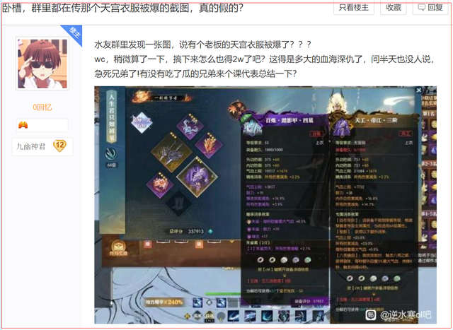 也正是因为过于“硬核”,让后来的mmo游戏基本上都删除了这一设定,毕竟神装被爆神豪心态炸裂分分钟退游,哪款游戏的官方都不想看到!然而就在这几天,却有一位神豪又遭遇了如此“惨烈”的事,价值两万的神装在PVP中被人爆出,场面一度让人失语。
