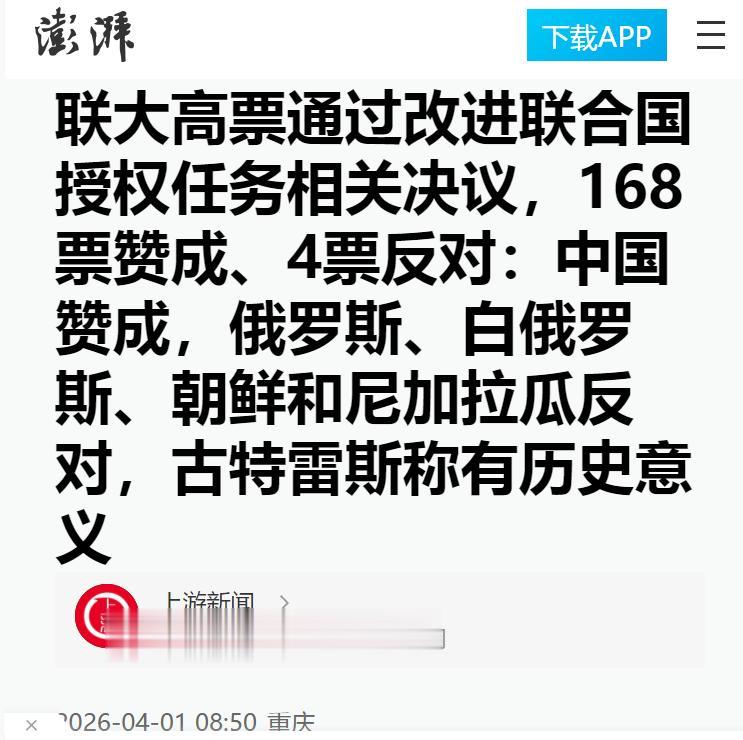 168:4,中国投下赞成票,罕见和俄朝立场不同,联合国即将变动?