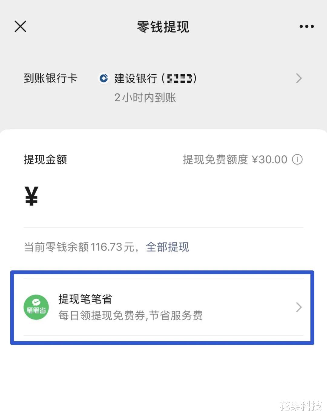 并且,现在微信零钱提现界面已经新增了一个「提现笔笔省」的入口。