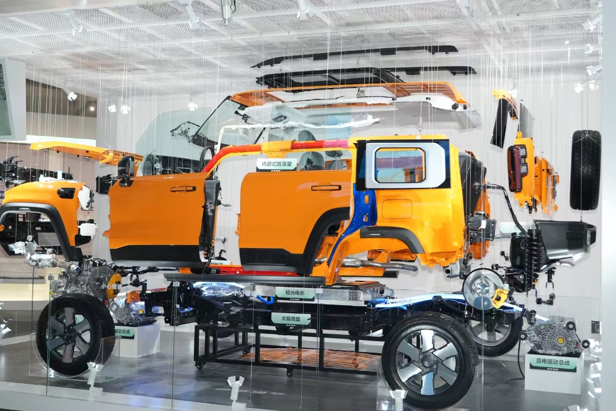 技术上,BJ40增程的表现同样令人信服。搭载超40度三元锂大电池,CLTC纯电续航152公里,满油满电综合续航可达1200公里。最高配车型拥有三把锁、全时四驱、内嵌式金属防滚架,系统综合功率高达403kW。非承载式车身设计,承受高强度扭曲与冲击,使它在交叉轴、炮弹坑等极端路况下依旧稳如磐石。增程技术不仅降低了故障率,也减轻了维护负担,同时缓解了纯电越野的里程焦虑——这或许就是北京越野所说的“城的更城、野的更野”。