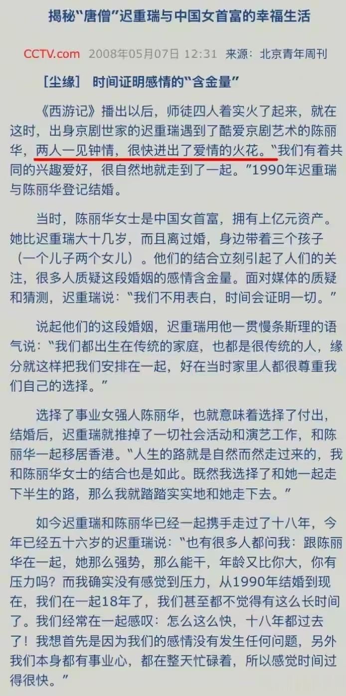 有人说,陈丽华嫁给“唐僧”迟重瑞,就是“郎貌女财”。