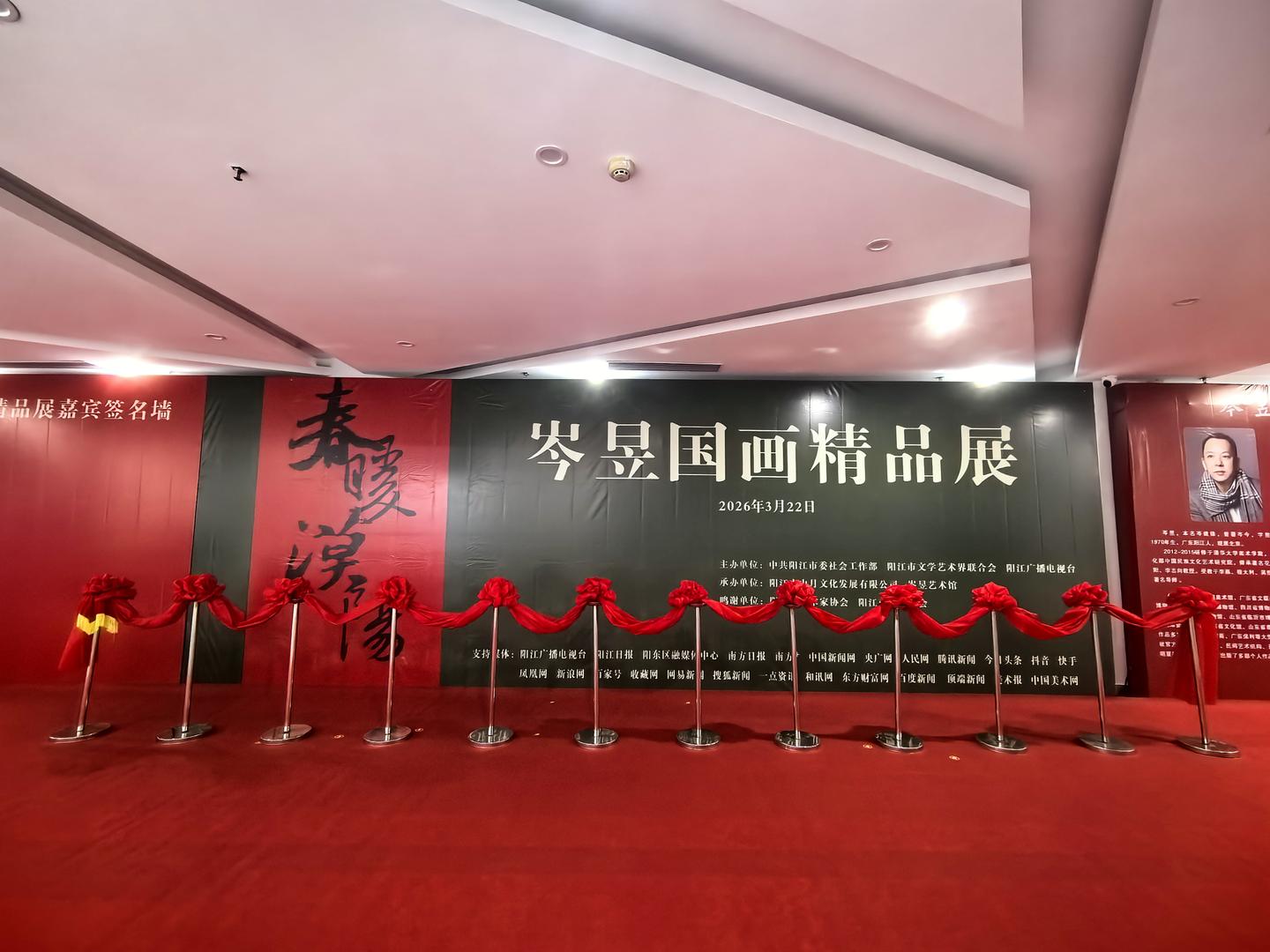 3月22日,“春暖漠阳”岑昱国画精品展在阳江市江城区新江大厦正式开幕。本次展览由中共阳江市委社会工作部、阳江市文学艺术界联合会、阳江广播电视台主办,阳江市山月文化发展有限公司、岑昱艺术馆承办,共展出岑昱创作的国画精品60余件,以丹青为媒,传承岭南画派风骨,弘扬漠阳本土文化,让艺术之光照进百姓生活。