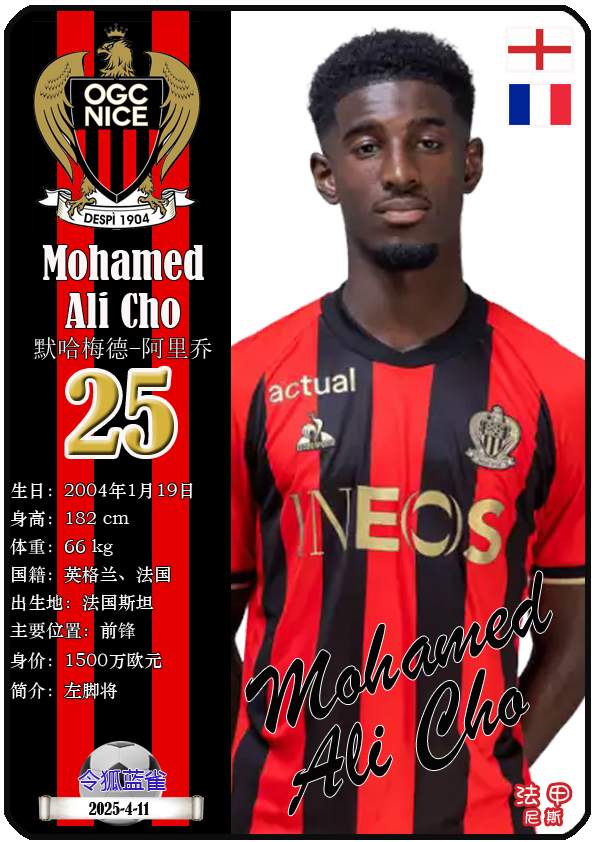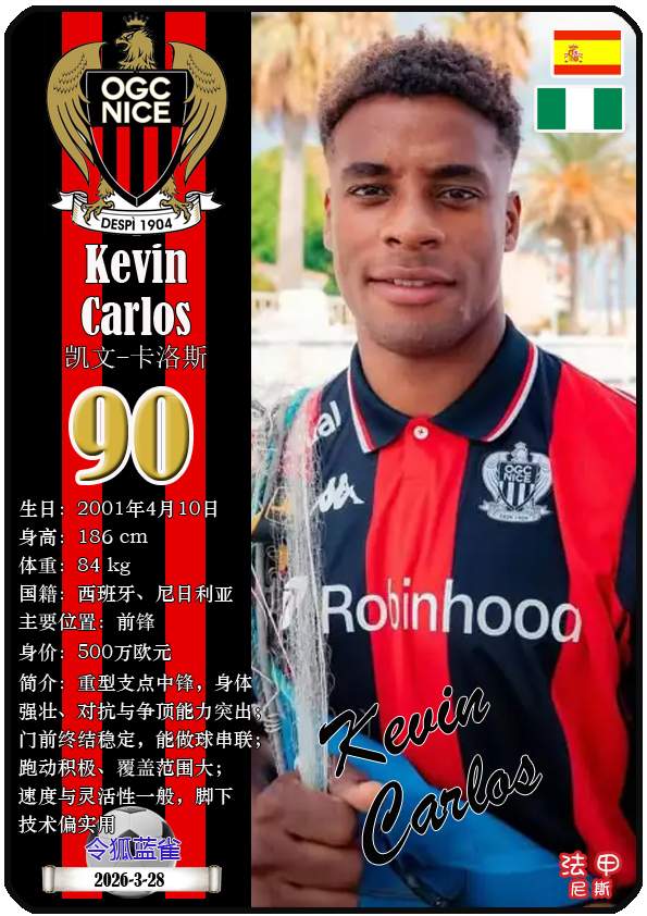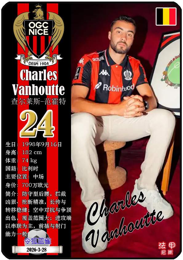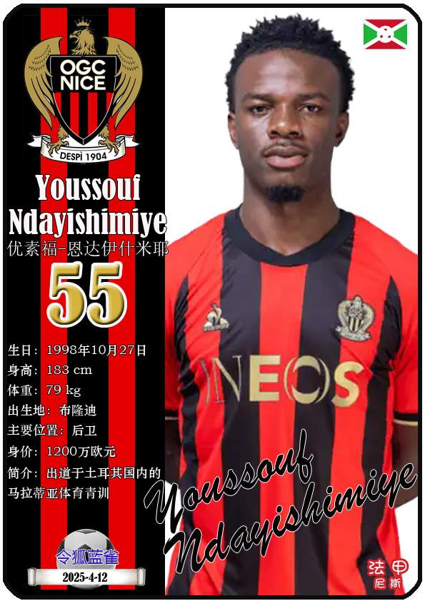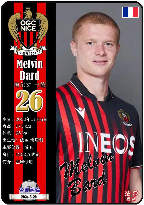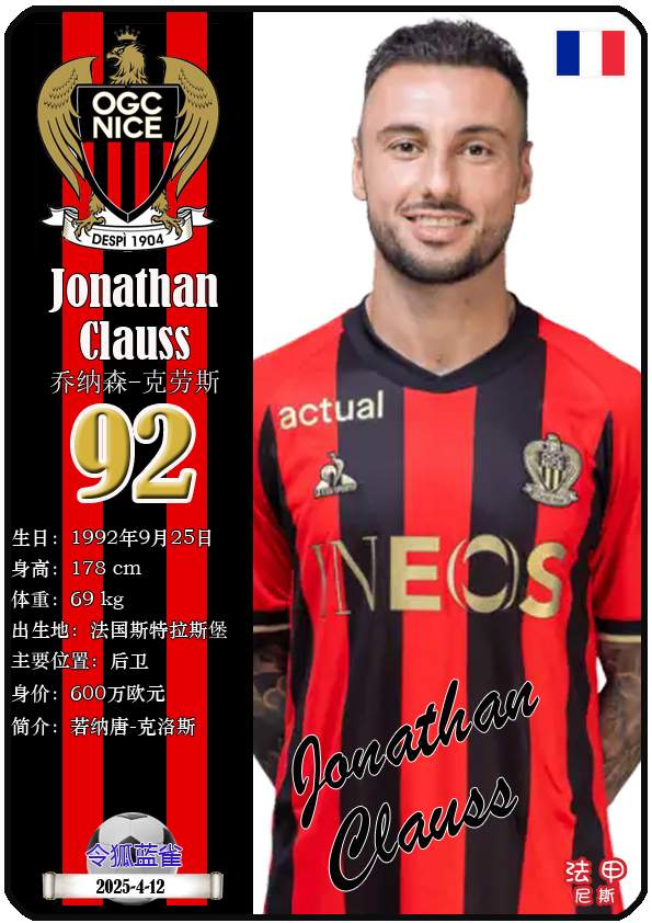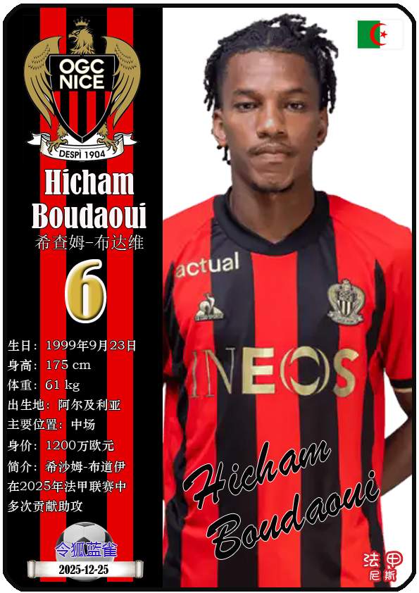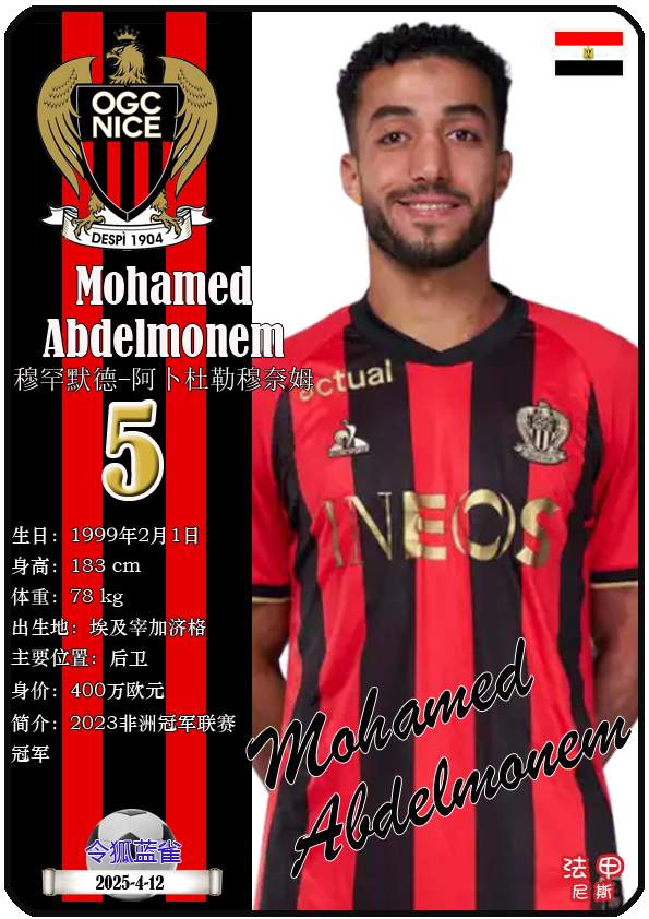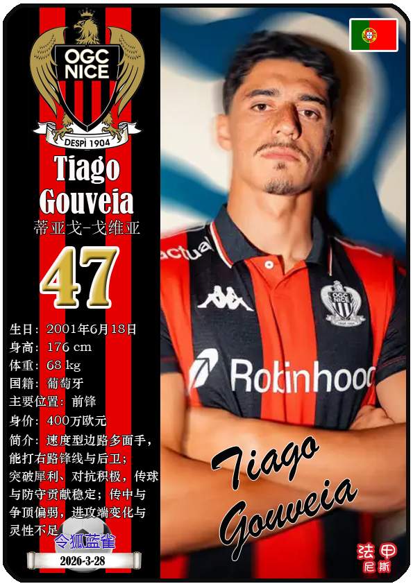 截至2026年3月28日,法国足球甲级联尼斯足球俱乐部主教练是克劳德-普埃尔,队内拥有球员索菲亚内-迪奥普、摩根-桑松、埃尔耶-瓦希等。本期以球星卡的形式展示目前法甲尼斯足球俱乐部的21名球员(按球衣号码排序):