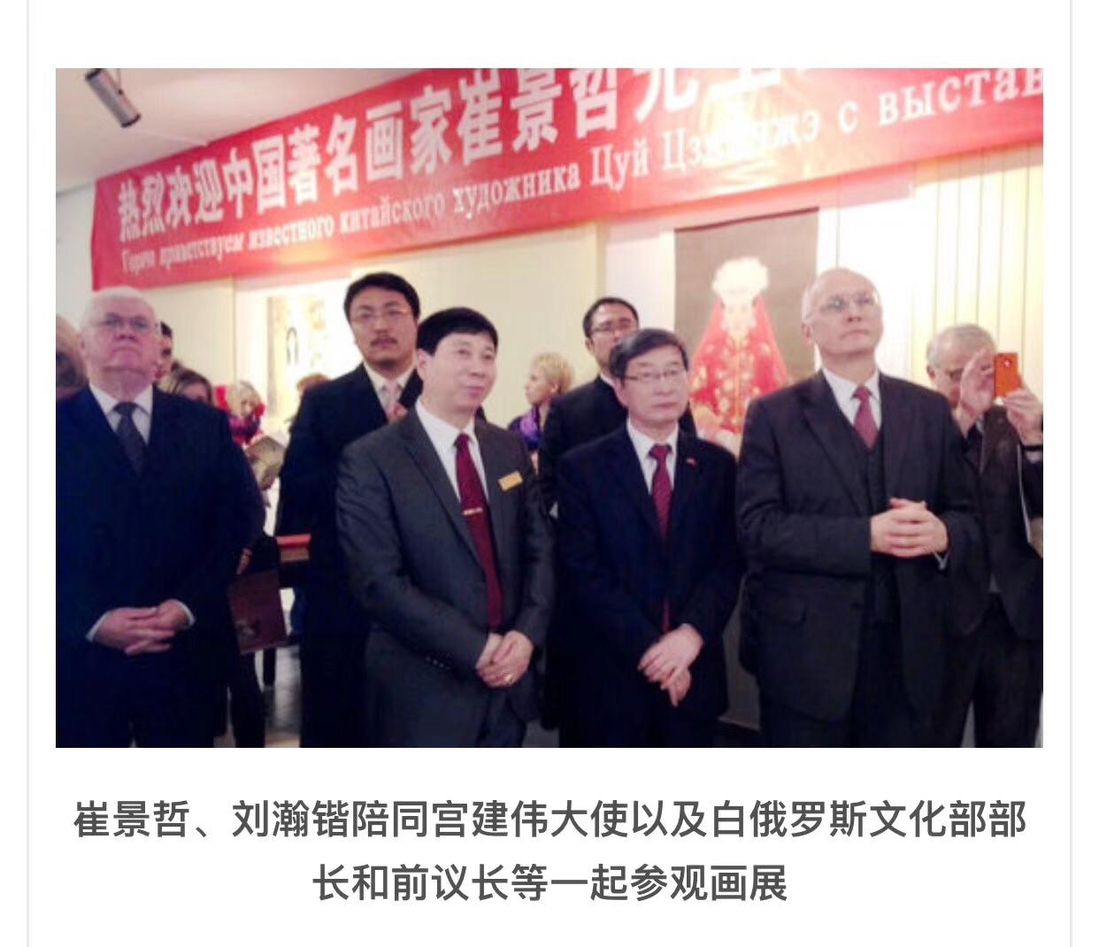 2013年12月,刘瀚锴特邀著名画家崔景哲,在白俄罗斯国立艺术学院举办画展,白俄罗斯前最高委员会主席库兹涅佐夫阁下,以及白俄罗斯文化部部长、外交部副部长、艺术家联盟主席等多个部委主要领导和白俄罗斯国立大专院校校长出席活动,中央电视台著名青年歌手郭津彤老师等人也亮相活动现场。