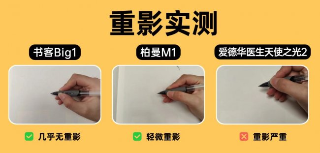 3.重影实测:书写清晰度的关键考验重影(笔尖或文字旁的虚影)会迫使眼睛反复调焦,是导致视觉疲劳的重要原因。我们模拟真实书写姿势,观察笔尖附近是否有虚影,以及文字边缘是否清晰。
