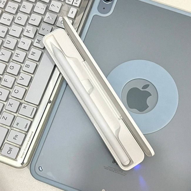 这款电容笔的笔身做了磨砂处理,触感细腻温润,握持时和手掌的贴合度也不错,只是重量约 18.2g,对比市面上主流的轻量款会稍沉一点,长时间握持手腕容易产生酸胀感。而且它的笔尖选用了高弹性的POM材质,耐磨性在线,书写时对平板屏幕也很友好。此外,充电方面搭载了 Type-C 快充,半小时左右就能满电,满电后能连续使用 9 小时,日常学习记笔记、手绘创作的需求都能轻松满足。同时还配有蓝牙电量显示功能,在 iPad 的小组件里就能直观看到剩余电量,不用再担心突然断电。