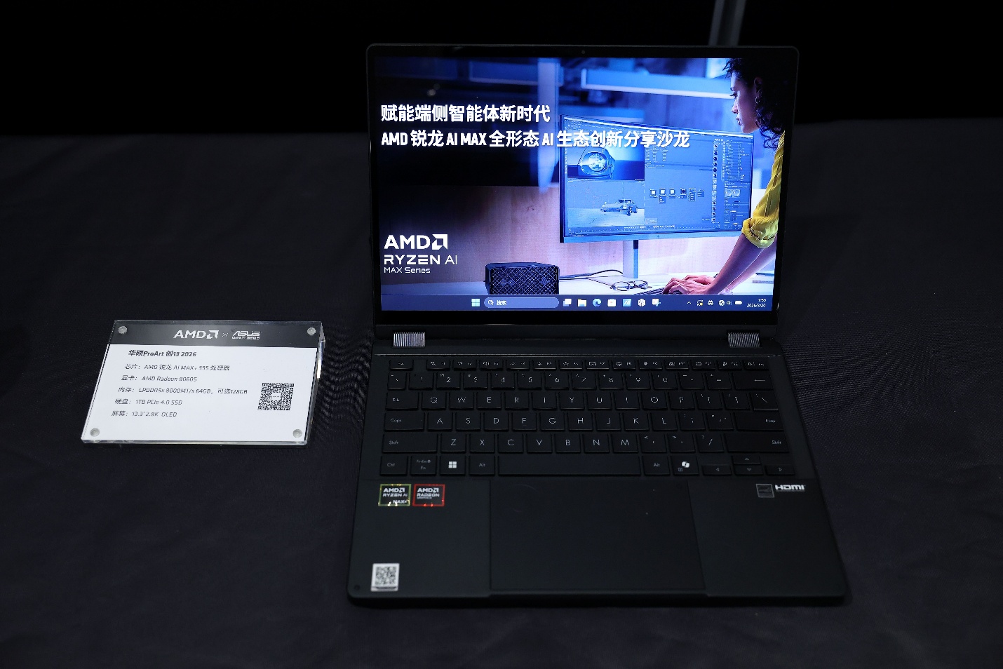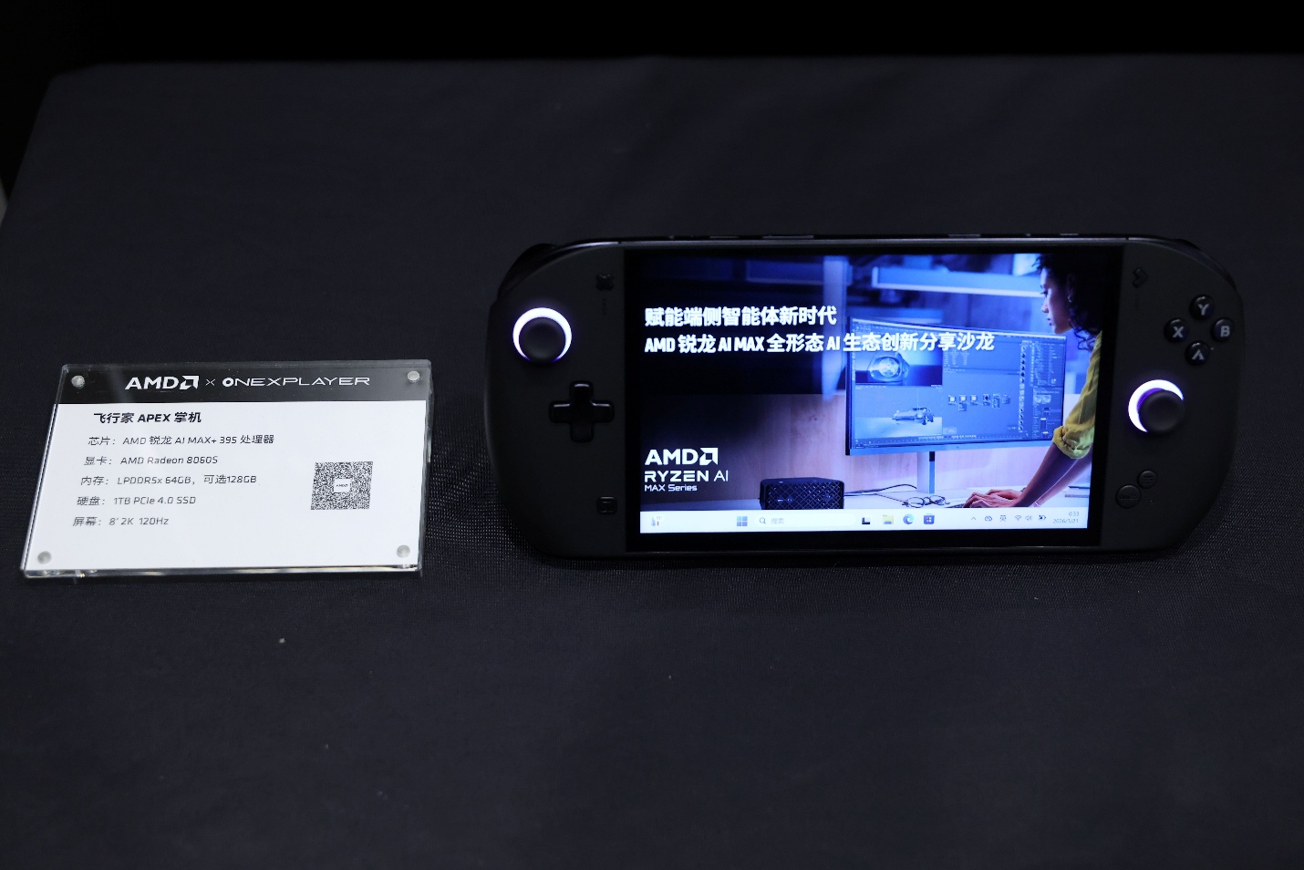 搭载 AMD锐龙 AI Max+ 系列处理器的笔记本华硕ProArt创13、华硕天选Air 2026、惠普战99 Ultra、ROG幻X、玄派玄机16等都已上市或者在现场展示,还有一款全新的搭载锐龙AI Max处理器的掌机壹号本OneXPlayer也可以在现场上手体验。