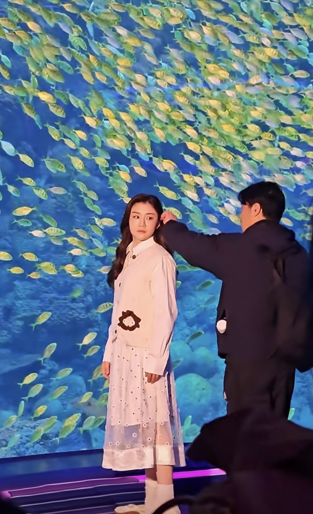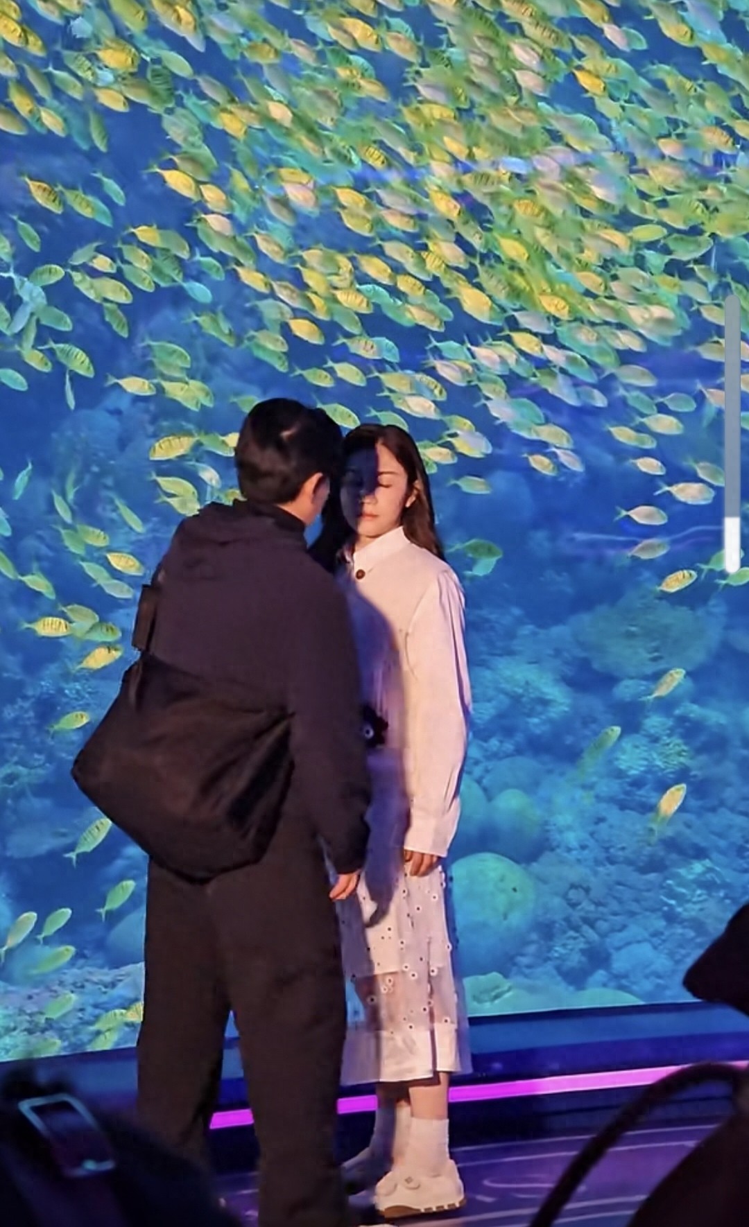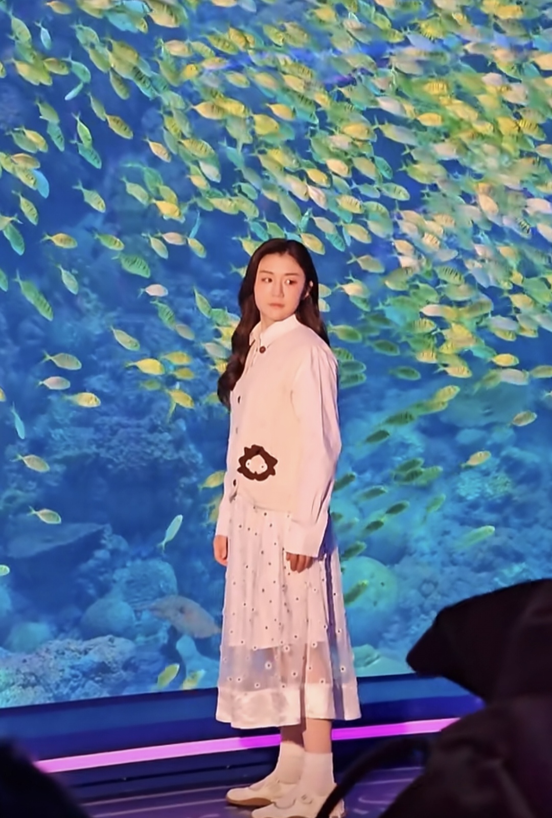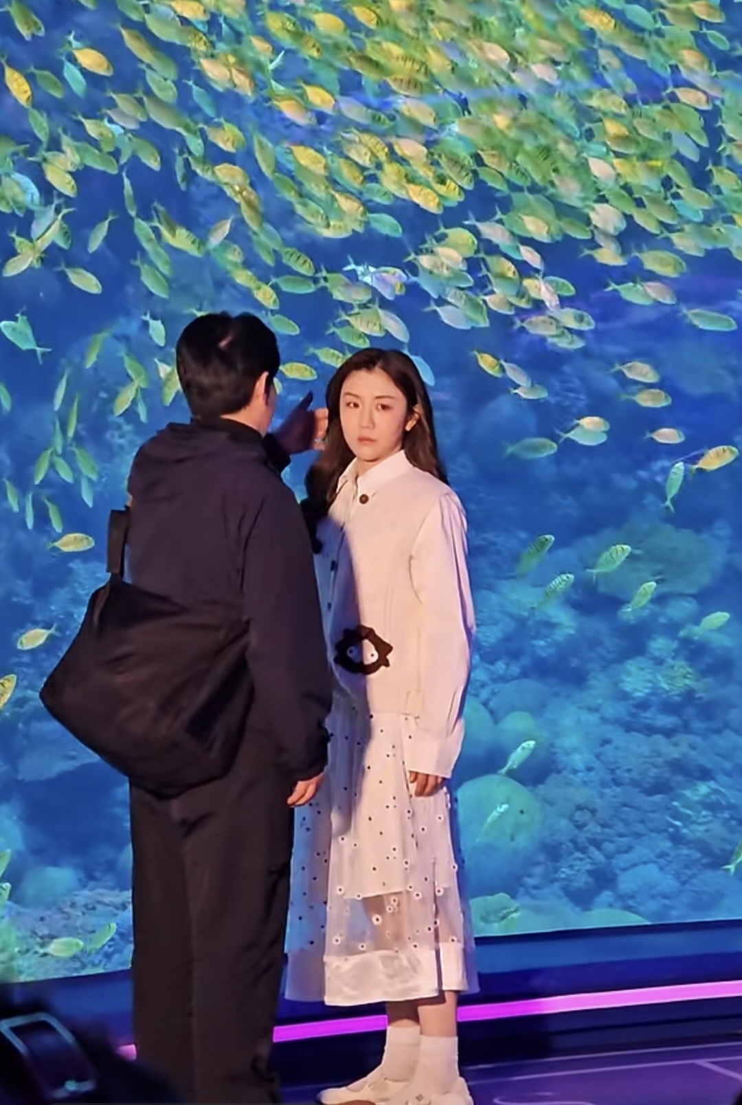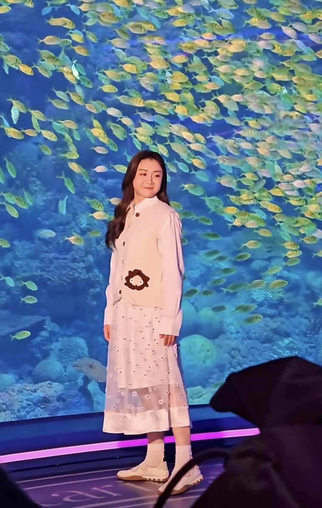 陈梦青岛极地海洋世界录节目,穿搭文艺清新,人美气质好!
