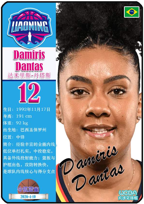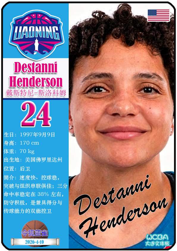 截至2026年4月10日,WCBA大连文体旅女篮主教练是张丹,队内拥有球员戴斯特尼-斯洛科姆、达米里斯-丹塔斯、斯派克-泰勒等。本期盘点目前WCBA大连文体旅的14名球员(按球衣号码排序):