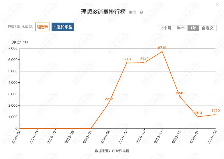 此外,李想还透露,得益于出色的用户口碑,理想i8的订单量也实现稳步增长,3月环比提升超100%。汽车网数据显示,2026年2月,理想i8销量为1210辆。按此测算,2026年3月,理想i8的销量约为2420辆。