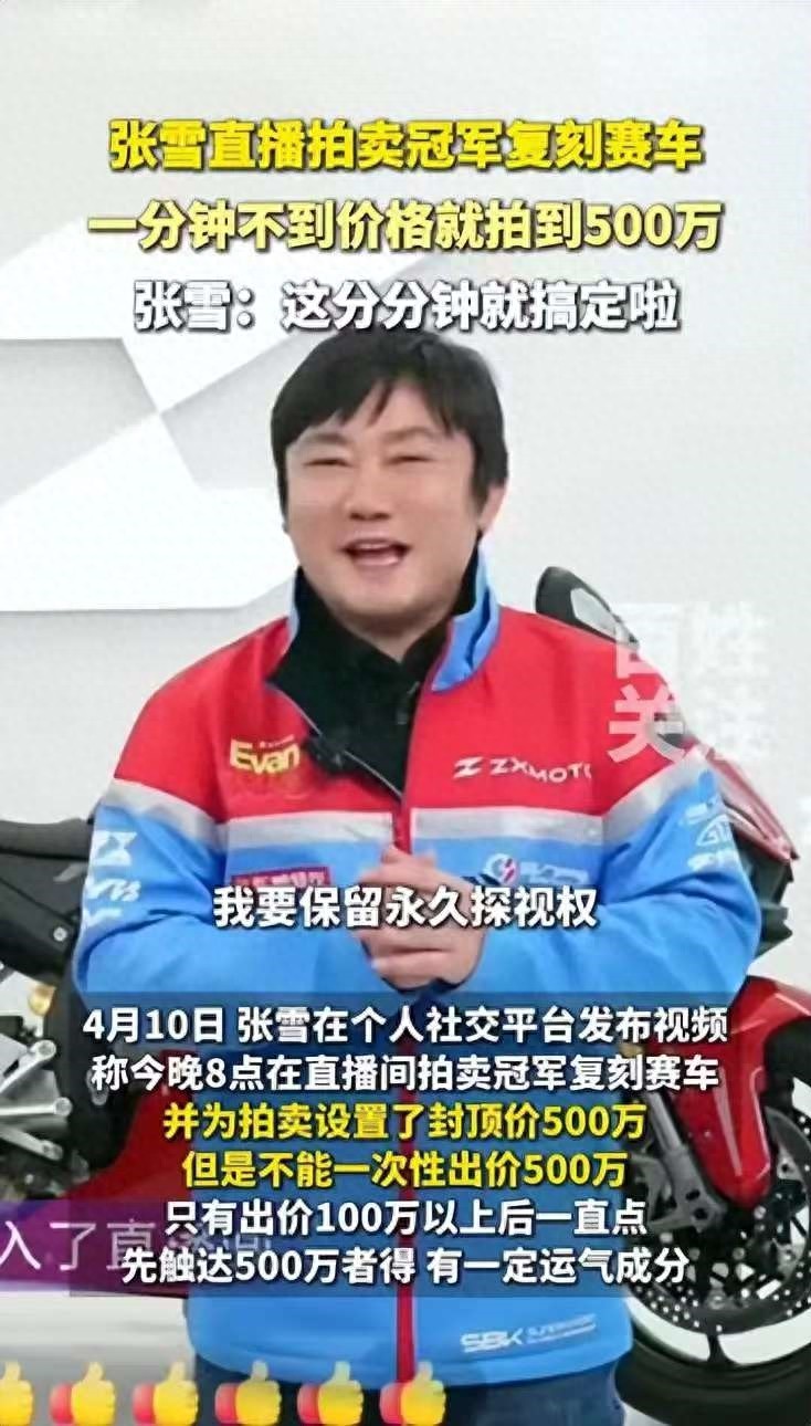 张雪设置500万封顶,实则藏着他的深层考量。第一,封顶是为了防止“慈善内卷”——如果这场拍卖没有封顶,以当下的热度,价格冲到800万甚至1000万都有可能。